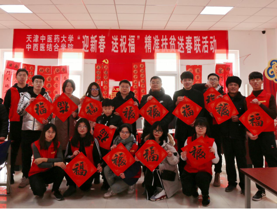 为进一步学习贯彻党的十九届四中全会精神,弘扬社会主义核心价值观和中华优秀传统文化,助力打赢脱贫攻坚战,1月13日,中西医结合学院联合大学驻村工作组在静海区大丰堆镇高家庄村举办了“迎新春 送祝福”精准扶贫送春联活动。驻村工作组张德强、郑超、魏永健,中西医结合学院辅导员徐帅帅和9名学生志愿者为村民们送去140余副春联与160余张“福”字。