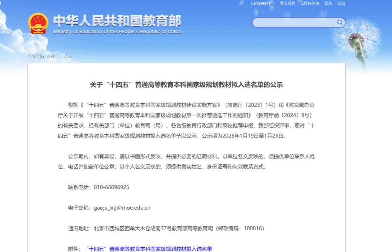 此次入围普通高等教育本科国家级规划教材,既是一项崇高荣誉,更是新一轮教材建设的起点。我们将以此为契机,持续聚焦立德树人根本任务,以教材建设为重要着力点,深化教育教学改革,推动优质教学资源共建共享。鼓励教师编写出更多高水平、高质量的教材,打造一批兼具思想性、科学性与实用性的精品教材,全面提升教材建设质量与育人成效。